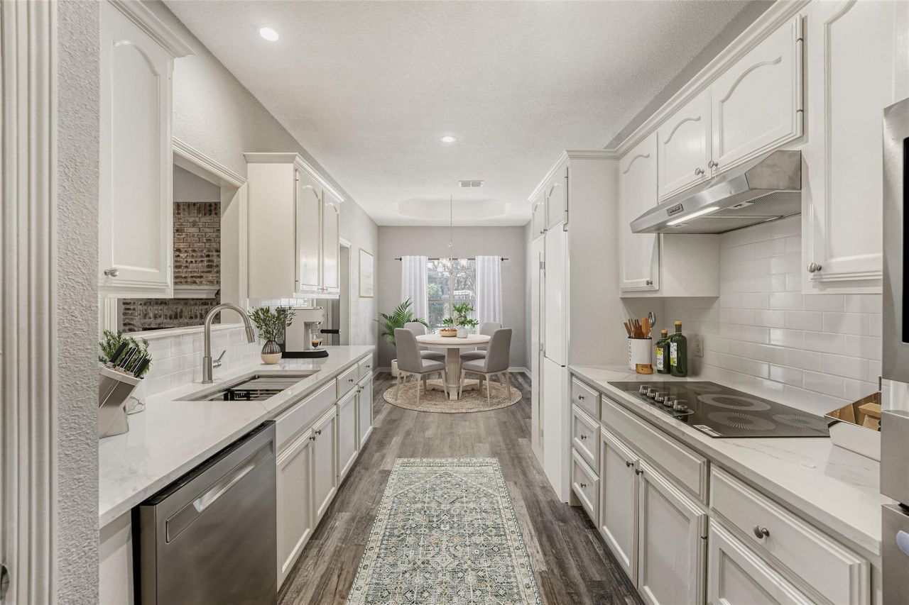 This charming, one-owner corner-lot home is tucked within the highly desirable Sierra Vista neighborhood of Georgetown. Thoughtfully maintained and truly move-in ready, it showcases numerous updates throughout. The remodeled kitchen shines with new quartz countertops, a new cooktop, built-in oven, microwave, sink, and faucet. Freshly painted cabinetry flows seamlessly into the home's crisp interior paint and beautiful luxury vinyl plank flooring featured in most rooms. Both the laundry room and bathrooms have been refreshed with newly painted cabinets. The primary bath includes new faucets, updated sinks, and bathtub, while the secondary bath features updated sink and faucet, as well. Major system upgrades offer peace of mind, including a recently replaced roof, a new HVAC system, and a water softener. One of this property's standout highlights is the expansive, oversized backyard which feels like a serene retreat right at home. Vibrant flower gardens and winding walking paths create a peaceful, nature-filled escape, while a drip irrigation system ensures effortless upkeep. It's the perfect setting for relaxing, entertaining, or gardening. A Maytag washer and dryer, along with a spare refrigerator, may convey with an acceptable offer. Ideally located just minutes from historic Georgetown Square and offering quick access to IH-35, this home blends everyday convenience with the charm of a warm, welcoming community. With thoughtful updates, careful maintenance, and a stunning backyard oasis, this is a wonderful opportunity to own a beautifully maintained home close to parks, shopping, dining, and more.