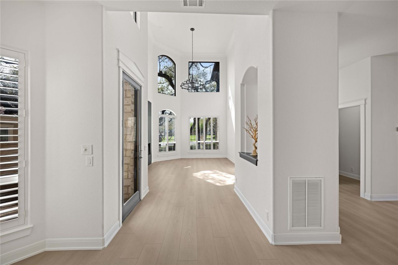 Welcome to 11 Treehaven, where comfort, style, and everyday luxury come together in the heart of the prestigious The Hills of Lakeway. This beautifully updated 4-bedroom home offers 2,583 sqft of inviting living space filled with natural light, soaring ceilings, and thoughtful upgrades throughout.At the center of the home, the newly remodeled kitchen shines with custom cabinetry, Quartz countertops, built-in refrigerator, premium ovens, a brand-new stove, and a spacious walk-in pantry?perfect for gathering, cooking, and creating memories. Fresh paint, brand-new designer flooring, updated fixtures, new faucets, and modern ceiling fans bring a clean, elevated feel to every room.The home was designed for both relaxing and entertaining, featuring a formal dining space, a warm and redesigned fireplace, and a fully converted blackout cinema/game room with a whole-home sound system?ideal for movie nights and hosting friends.The oversized primary suite offers a peaceful retreat and features a huge walk-in closet, while all additional bedrooms provide generous layouts and their own walk-in closets, ensuring comfort and ample storage for everyone. Step outside to a private balcony overlooking the golf course, where mornings feel serene and evenings unwind effortlessly. The cozy backyard with deck creates the perfect setting for quiet nights or weekend gatherings.Additional upgrades include a brand-new garage door, new staircase railings, and smart home features throughout. Located in one of Austins most sought-after neighborhoods, this home is more than just a place to live?its a place to truly enjoy.
