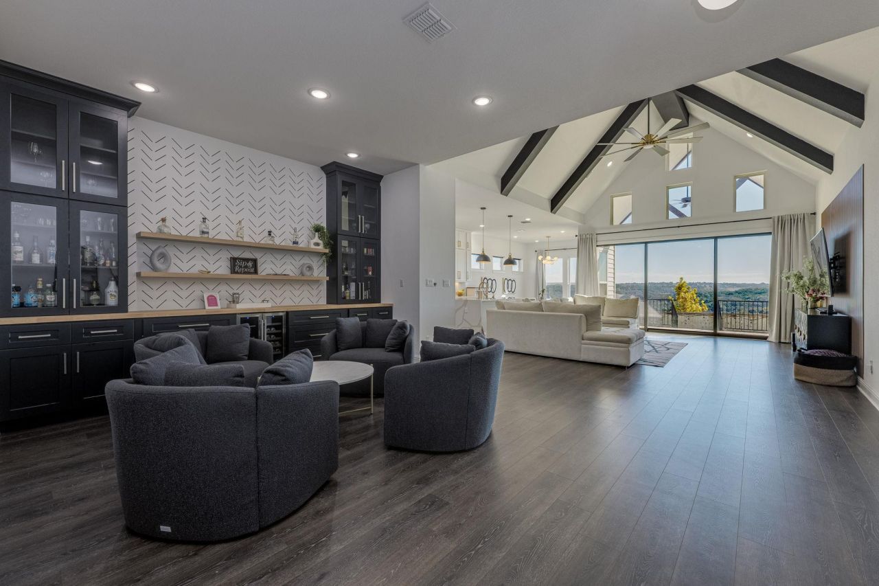 Discover this immaculately maintained one-story home in the highly desirable Crescent Bluff community. Offering 3 bedrooms, 3 full bathrooms, a dedicated media room, and formal dining, this stunning home spans 3,001 sq. ft. of thoughtfully designed living space with premium upgrades and modern finishes throughout.The bright, open-concept floor plan is filled with natural light and centers around a custom chefs kitchen featuring Calcutta quartz countertops, a dramatic waterfall island, pull-out shelving, a spacious pantry, under-cabinet lighting, and high-end stainless steel appliances, including extended cabinetry and a flex-door refrigerator. The kitchen flows seamlessly into the formal dining area, making it ideal for entertaining.A spacious media room offers the perfect space for movie nights or game-day gatherings. The expansive living room showcases beautiful backyard views through large sliding glass doors, creating a seamless indoor-outdoor connection. An additional living area provides flexible space for guests or a kids retreat and includes custom cabinetry with glass doors, perfect for a bar or display area.The spa-inspired bathrooms feature elegant ceramic tile and floor-to-ceiling vanity mirrors. The laundry room is enhanced with decorative ceramic tile, while the finished and painted garage is pre-plumbed for a water softener.Enjoy resort-style living with Crescent Bluff amenities, including a community pool, clubhouse, childrens playscape, basketball court, parks, and scenic hike-and-bike trails.Experience the best of Georgetown living, where comfort, style, and community come together beautifully.