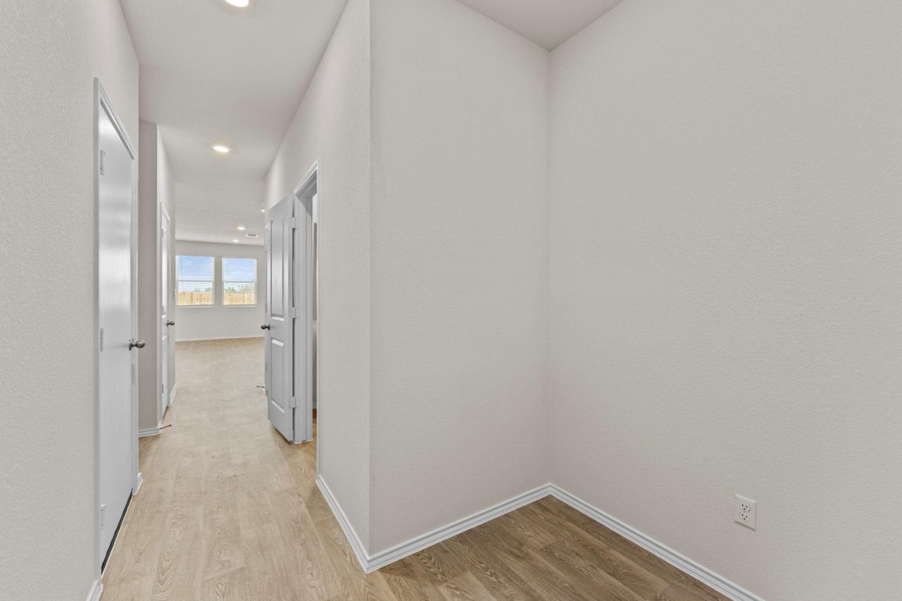 The Linnet is one of our new two-story floorplans featured in our Bollinger community in Maxwell, Texas. This 1,419 square foot home includes 3 bedrooms, 2.5 bathrooms and a 1 car garage. Our homes in Bollinger feature our modern farmhouse exterior and the Linnet floorplan is available in 2 exterior options. As you step inside, youll cross through the foyer, passing the powder room and staircase, and enter the dining room, kitchen, and family room. Built as an open concept, this space is sure to be the center of your home life and family activities. The kitchen features laminate countertops with 50/50 stainless steel drop-in bowl, 4 laminate backsplash, 36 upper cabinets and stainless-steel appliances, including a gas range. Off the kitchen is the pantry and hall closet. Upstairs youll find the 3 bedrooms and 2 full bathrooms. At the front of the home is the primary bedroom with an attached private bathroom, making the start of your day a seamless step from sleep to your morning routine. Enjoy the walk-in shower, laminate countertop, and a generously sized walk-in closet. The secondary bedrooms include a closet with shelving and the hall bathroom includes a shower/tub combination. The utility room and hall closet finish out the upstairs space. *Seller is willing to assist with closing costs or a rate buy-down through preferred lender with an acceptable offer. *