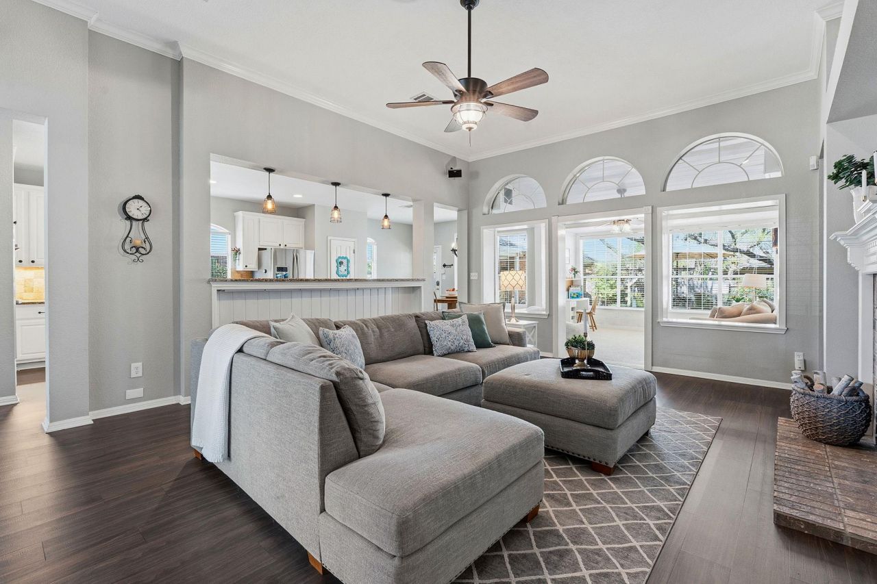 Welcome to this beautifully updated 4-bedroom, 2.5 bath home, offering a perfect blend of style, comfort, and functionality. With a 2-car garage and numerous upgrades throughout, this home is designed for everyday living and effortless entertaining. Step inside to find upgraded flooring, elegant crown molding, and wainscoting in the foyer, creating a warm and inviting first impression. A dedicated office with French doors provides the ideal work-from-home space, while the formal dining room is perfect for hosting gatherings. The thoughtfully designed hall tree?with a built-in bench, shoe storage, and wall-mounted coat racks?keeps the entryway organized and stylish. The open-concept layout seamlessly connects the living room, breakfast area, and kitchen. The oversized living room features a cozy fireplace, built-in white cabinetry, and abundant natural light, with direct access to a stunning sunroom. This inviting space showcases exposed brick, white shiplap accents, and a modern aesthetic, while offering peaceful backyard views. The kitchen is a true centerpiece, featuring abundant granite countertops, a large center island, gas cooktop, double ovens, white cabinetry, under-cabinet lighting, recessed lighting, and ample storage, including a spacious pantry. The primary suite is generously sized and filled with natural light from a charming boxed window near a cozy reading nook. The ensuite bath includes dual vanities with granite counters, a walk-in shower with white subway tile surround, a jetted tub, and a custom walk-in closet. Step outside to a private patio retreat shaded by mature trees, creating a peaceful and comfortable outdoor setting?perfect for relaxing or entertaining. Zoned for the highly regarded Brushy Creek Elementary and Cedar Valley Middle School in Round Rock ISD?with convenient access to major highways, shopping, dining, and major employers. Enjoy nearby Brushy Creek Regional Trail with miles of scenic paths for walking, running, and biking.