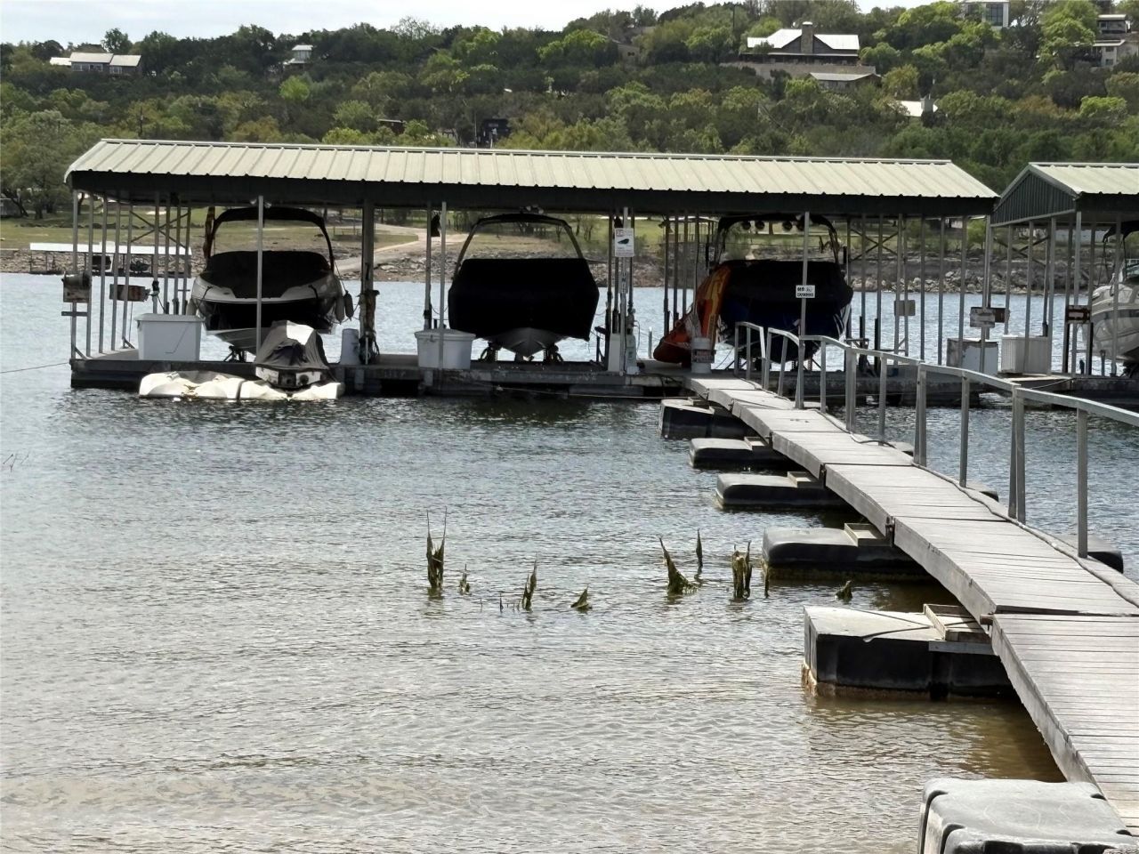 The dock/slip is 10' x 28' and comes with a Hydrohoist lift, 6000#. This is one of the few times you can purchase a dock without having to build you home first. Plus, even when the lake is low, these docks are still floating and accessible. The $450 quarterly fee covers the electricity, insurance on the dock, moving the slips as the lake levels changes and maintenance on the adjacent grounds. Ownership of the boat slip gives you partial ownership of the adjacent park which has a pavilion you can use for parties, graduations, etc. This property is a rare find! There are plans for building larger slips.Since this is an unusual property, call for additonal details.