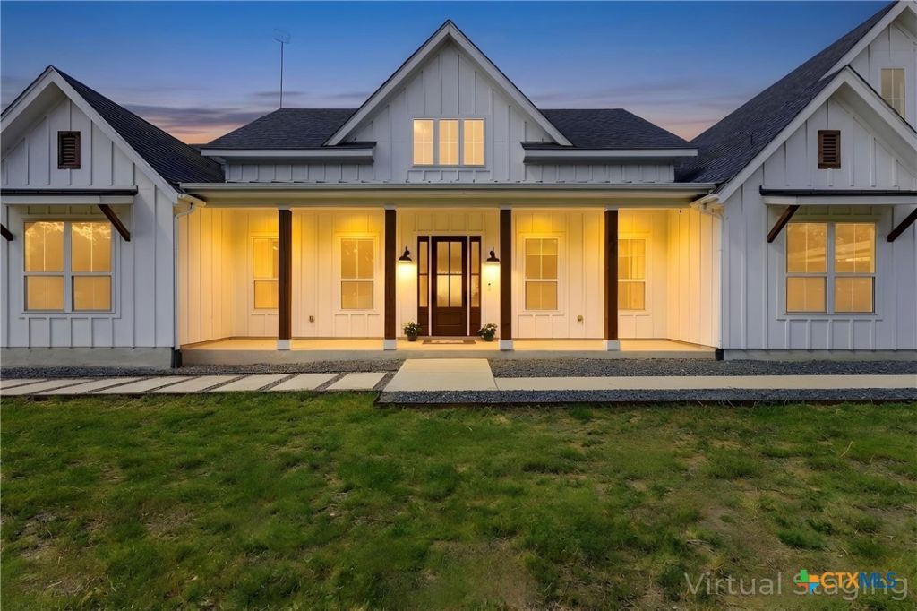 Custom modern farmhouse meets timeless elegance in this stunning property, situated on an expansive & incredibly private 3.08-acre lot showcasing serene Hill Country views & endless possibilities?all with no HOA to limit your vision. Fully fenced with a solar-powered gated entry, the property is equipped with a generator hookup, RV hookup, buried 250-gallon propane tank, hardwired exterior security cameras, & a whole-house water filtration system. A long driveway leads to a side garage featuring epoxy floors. Inside, the home welcomes you with an open layout, soaring ceilings, expansive windows, & beautiful wood-look ceramic tile. The spacious living room is highlighted by a beamed cathedral ceiling, tranquil views, & a striking black wood-burning stove, seamlessly flowing into the dining area & kitchen. The kitchen impresses with quartz countertops, a large island with bar seating, crisp white cabinetry with under lighting & pot filler over the stove, a classic subway tile backsplash, & a custom butler's walk-in pantry. An office/flex space offers versatility for work or hobbies. The primary suite features a cathedral ceiling, an electric fireplace with mantle, & a chic ensuite bath with dual vanities, a soaking tub, frameless glass shower, & a spacious walk-in closet with built-ins. Two additional bedrooms provide flexibility & share a full bath. Step outside to enjoy the expansive backyard, where a large covered patio with a gas stub & a beautifully crafted circular stonework patio create the perfect setting for entertaining or relaxing under the Texas sky. Additional highlights include a spacious storage shed w/tools that convey. With ample room to roam & customize, this property offers the freedom to raise animals, start a garden, build a guest house, or create the lifestyle youve always envisioned. Ideally located just a short drive from H-E-B, shopping, dining, & recreation, & with easy access to TX-195 & US-183.
