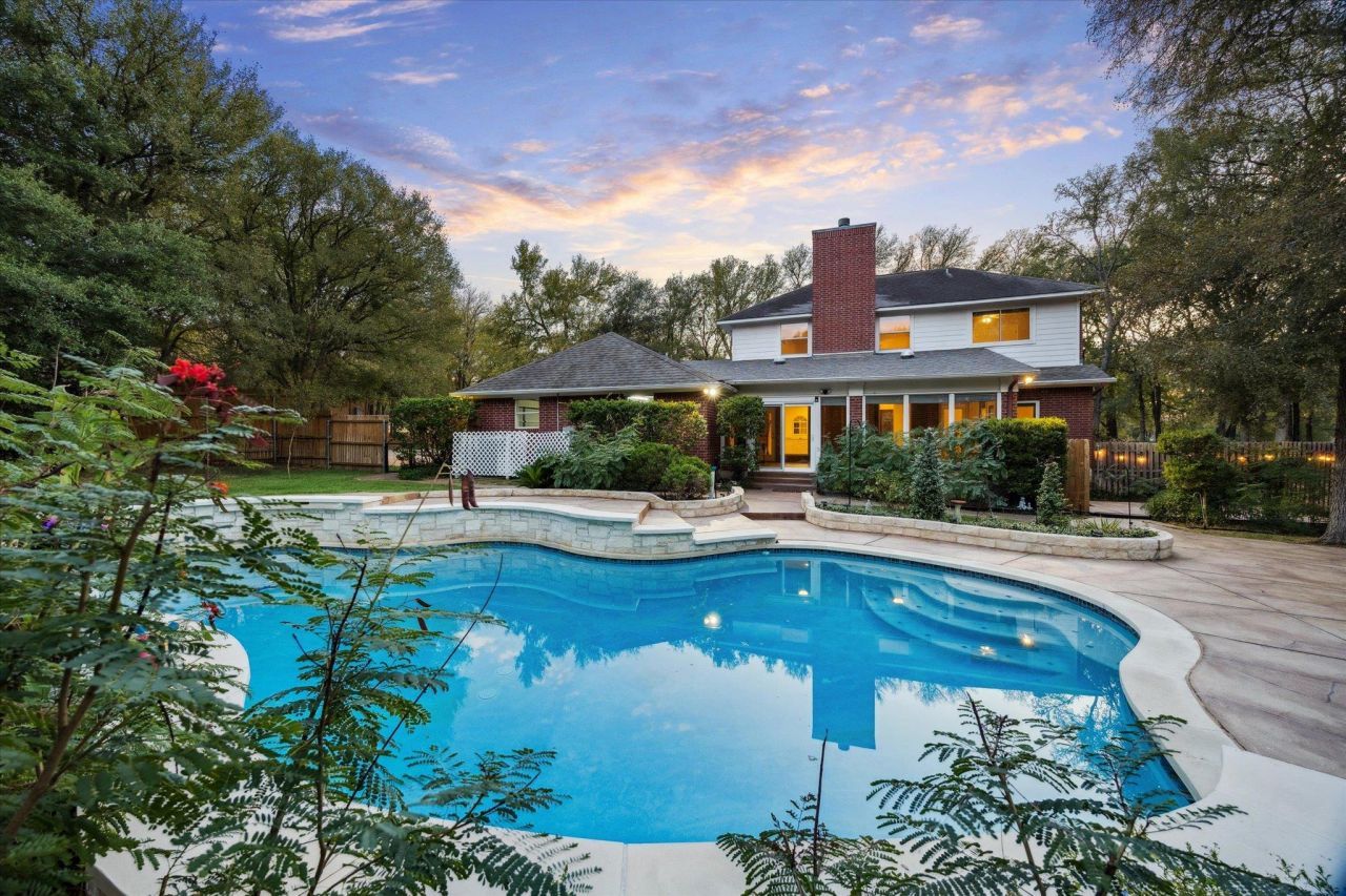 Experience comfort, style, and convenience in this beautifully maintained brick home with a formal, stately appearance, located in the desirable River Crossing equestrian neighborhood?just 15 minutes from the airport and 25 minutes from downtown Austin and 15 minutes from Bastrop. Set on 2.02 acres with mature trees, gardens, a sprinkler system, and a circle driveway, this property offers a peaceful, park-like setting. Enjoy the sparkling custom pool, perfect for relaxing or entertaining guests. There is direct access to this neighborhoods private nature trail that leads to the Colorado River. Inside, the updated kitchen features stainless steel appliances, a center island ideal for cooking and hosting, and abundant storage. All of the first floor showcases tile or hardwood floors for a clean, modern look. The inviting living room includes a cozy fireplace and wet bar, while the bright sunroom?with vaulted ceilings?overlooks the scenic backyard. The primary suite provides private patio access and a bathroom with double vanity, separate shower, tub, and an oversized walk-in closet. Upstairs, a spacious game/flex room with its own wet bar offers the perfect space for entertaining, complemented by three large bedrooms. Additional highlights include an attached two-car garage plus a oversized detached 940 sq ft three-bay garage/workshop with power, ideal for hobbies, projects, horse barn or extra storage. Perfect for business travelers or anyone seeking a tranquil retreat close to Austins top destinations, this home blends space, function, and modern comfort on a beautifully wooded property. Please make sure all lights are off and the front door is properly locked after showings. Cameras are on site. Sold As-is.