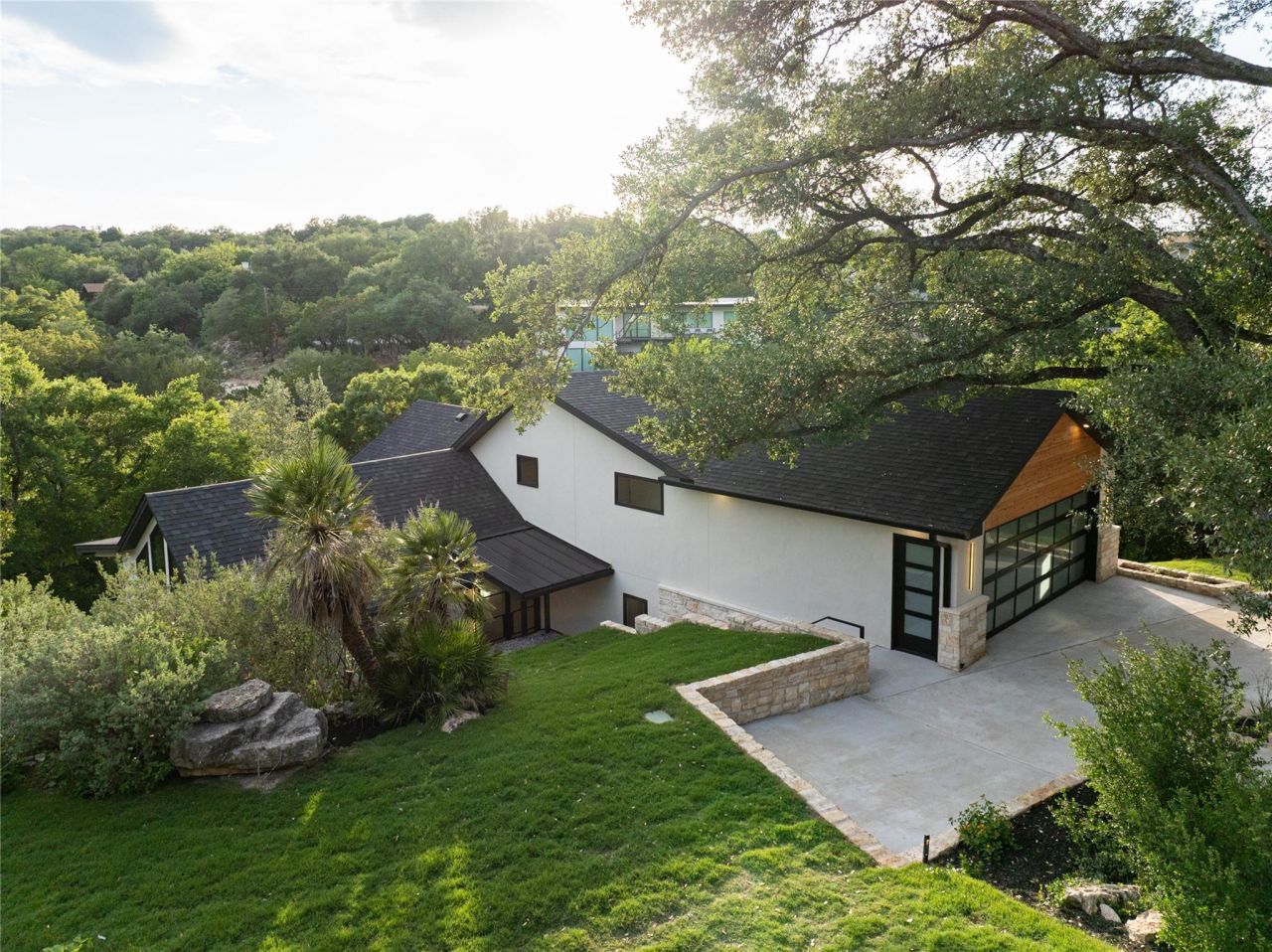 Welcome to your private retreat of contemporary luxury, nestled within the tranquil beauty of Old Lakeway. This exceptional home, built in 2025, exudes sophistication and style at every turn, set on a lush half of an acre beneath a canopy of mature trees. Step inside to discover a seamless fusion of modern design and effortless functionality. Sunlight pours through expansive windows, illuminating the open-concept layout, where the kitchen flows effortlessly into the dining and living areas?an inviting space for both intimate gatherings and grand entertaining. Offering Thermador appliances, massive butler's pantry off main kitchen with a separate 84 bottle wine closet. Boasting glass staircase and floating oak stairs. Designed for both comfort and convenience, the main level boasts two spacious bedrooms including a serene primary suite with a spa-like bath and generous walk-in closet. Upper level has a private bedroom and full bath with entrance to garage. The lower level offers a secondary living area, a versatile flex room, and a private guest suite with its own en-suite bath. Two additional bedrooms with a full bathroom. Full kitchenette, laundry with a pass-through to 1600 sqft of decking. Outdoors, a covered patio and dining area invite you to savor al fresco meals amid the natural beauty of your surroundings. Enjoy the private backyard with a beautiful canyon and year-round stream flowing in the back. Located just minutes from Hill Country Galleria, top rated Lake Travis ISD schools and premier shopping, dining and recreation. This home offers the perfect blend of luxury, comfort and convenience. Adjacent .48 acre lot is also available. Wonderful opportunity to own an acre lot with plenty of flexibility. Home is also available for sale. Contact agent for information.