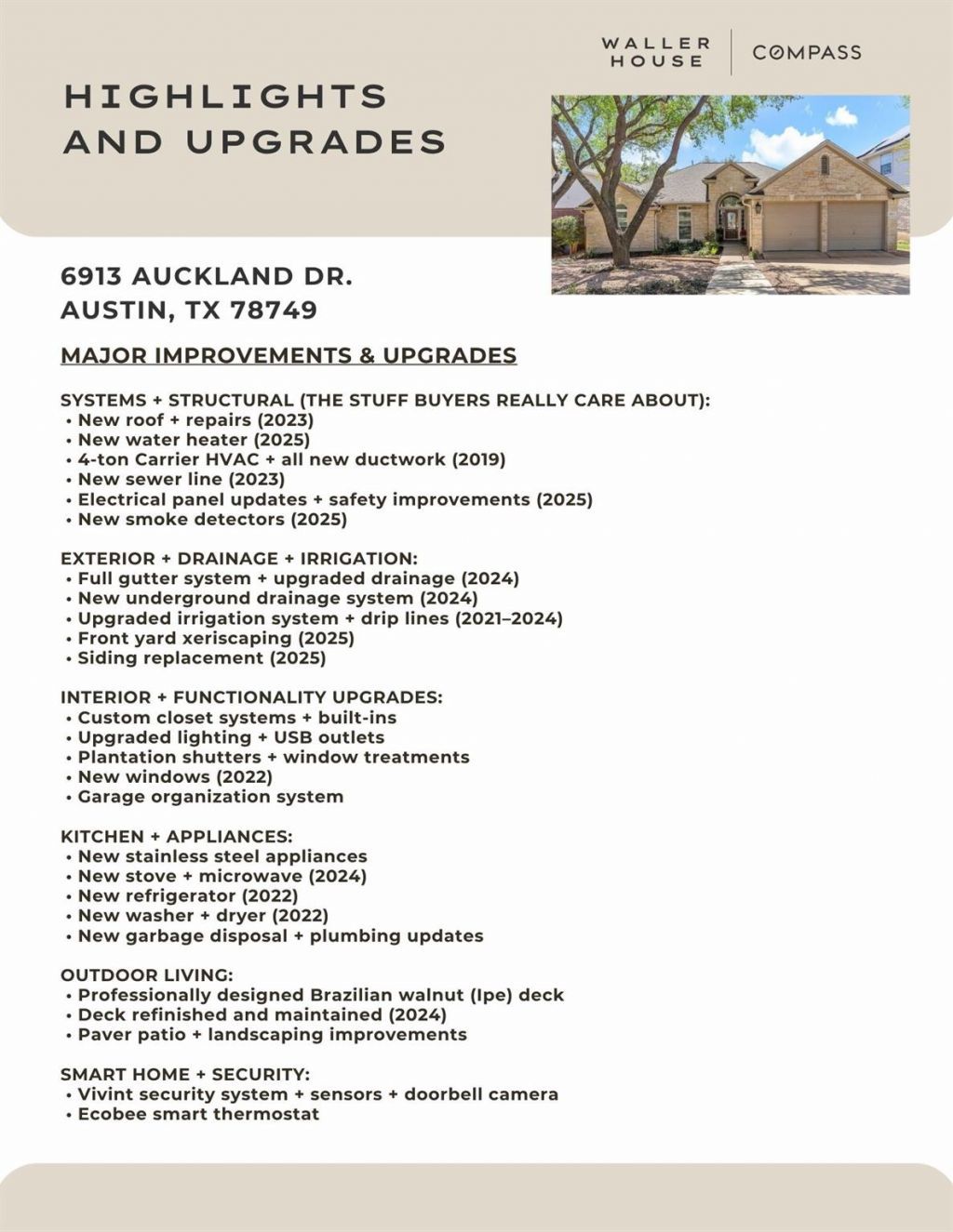 This pristine single-story home in the highly sought-after Circle C neighborhood is a rare find, offering a level of maintenance and care that is hard to come by. For buyers who dont want to worry about the big-ticket items, this home delivers. Major systems have been thoughtfully updated and proactively maintained, allowing you to step into a home where the work has already been done.Thoughtfully designed, the floor plan offers three bedrooms, two full baths, and two dining areas that live effortlessly day to day and when hosting.Designer-selected finishes include 5 wood plank floors, plantation shutters, and custom cabinetry and closet systems throughout. The open kitchen is both elevated and inviting, featuring granite countertops, a Blanco granite sink, new stainless steel appliances, a large breakfast bar, and a bright breakfast nook, all flowing seamlessly into the formal dining area.The spacious owners retreat is filled with natural light and offers a spa-like bath complete with a frameless glass walk-in shower, built-in hamper, drawer with electrical outlet, and a generous walk-in closet. Secondary bedrooms are well-sized, with one featuring a thoughtfully designed built-in desk, lighting, and electrical, ideal for a home office or flex space.What truly sets this home apart is the level of investment over time. Major updates include a new roof (2023), new water heater (2025), 4-ton Carrier HVAC with all new ductwork (2019), new sewer line (2023), electrical panel updates (2025), upgraded irrigation and drainage systems, and siding replacement (2025), offering peace of mind for years to come.Outdoor living is just as intentional, with a professionally designed Brazilian walnut (Ipe) deck and built-in countertop space for a Big Green Egg, creating a space that feels as good as it looks.A rare opportunity to own a truly turnkey, meticulously maintained home in Circle C where quality, care, and livability are evident in every detail.